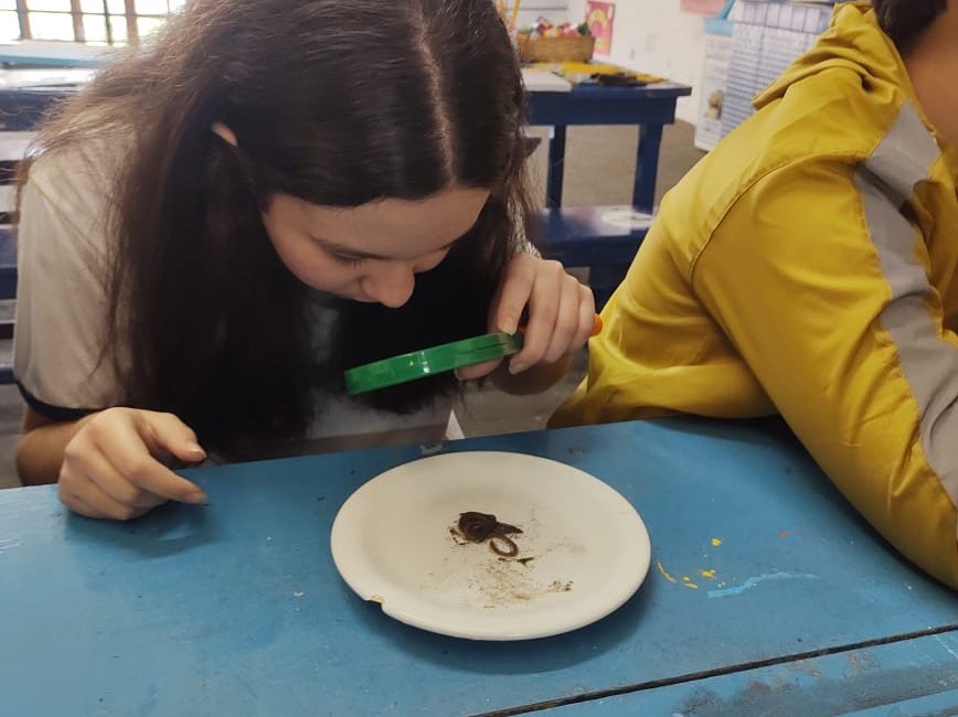 Aula prática sobre Filo Anelídeos Autor do post De Qamar Data do post 8 de setembro de 2022 Categorias Em Notícias Aula prática de Ciências sobre Filo Anelídeos, observação das estruturas da minhoca da Professora Maura Fernandes.