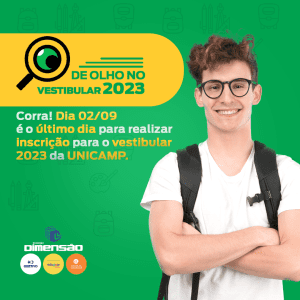 Alô estudantes! Acabam no dia 02/09 as inscrições para o vestibular 2023 da UNICAMP. Corra que ainda dá tempo fazer sua inscrição através do site: https://bit.ly/3K2YGYG .